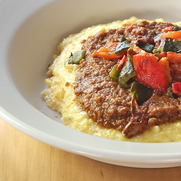 Cheesy Polenta + Mole & Pepper Relish