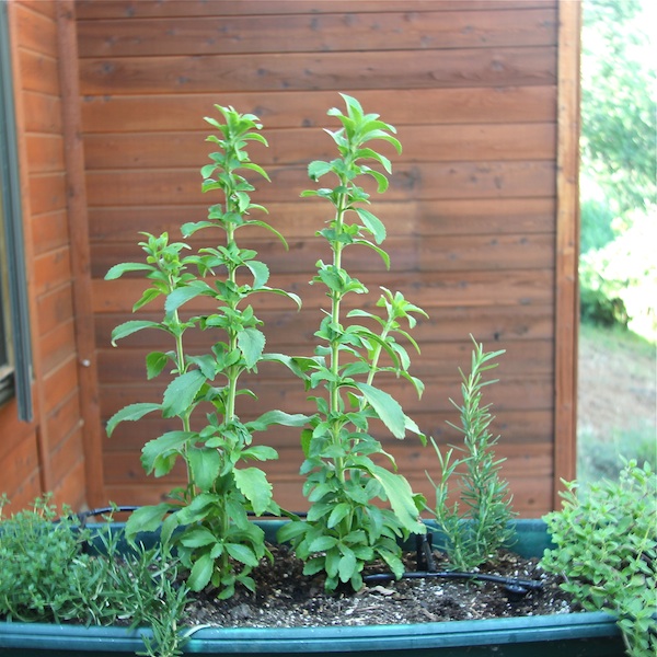 Stevia is by far the coolest thing I've grown this summer. And yes this is the same stevia that the powdered sweetener on the grocery shelves comes from. It's arguably the hottest new sweetener out there right now, since its extract is 200 times sweeter than granulated cane sugar, and doesn't raise blood insulin levels. We're still learning about this sweetener though.