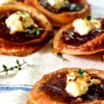 Spoon one tablespoon onion jam in the middle of each pastry round, and top with one tablespoon of crumbled feta, and a twist of fresh black pepper. Bake for 20 minutes until puffed and golden brown.