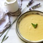 Tropical chilled mango soup with flavors of coconut and lime - perfect for summer evening dinner party.