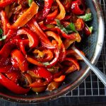 - 6 red bell peppers, sliced into long slices, 1" wide